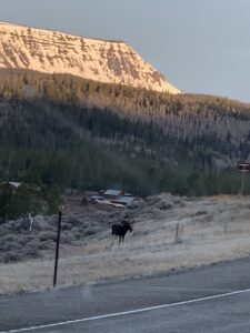 We decided to take a short trip and so we looked on the map and choose a small town, Lander, about 2 hours from the park and 9 hours from the house which made it a good one-day drive. It was in a great area to see wildlife, and it did not disappoint. It was on the reservation, and the road north ran along the Wind River Range. On the way up we saw literally hundreds of antelope but that was just a smidgeon of things to come.