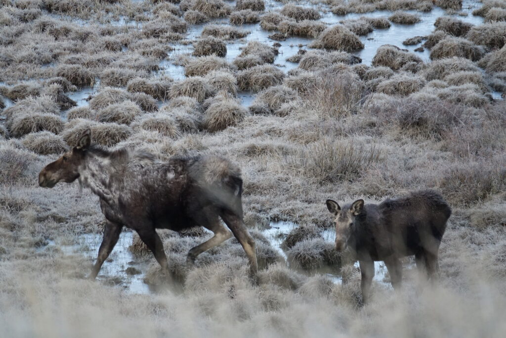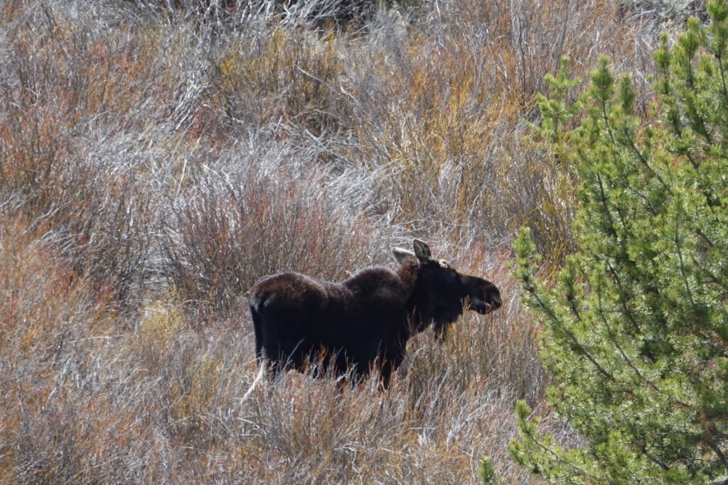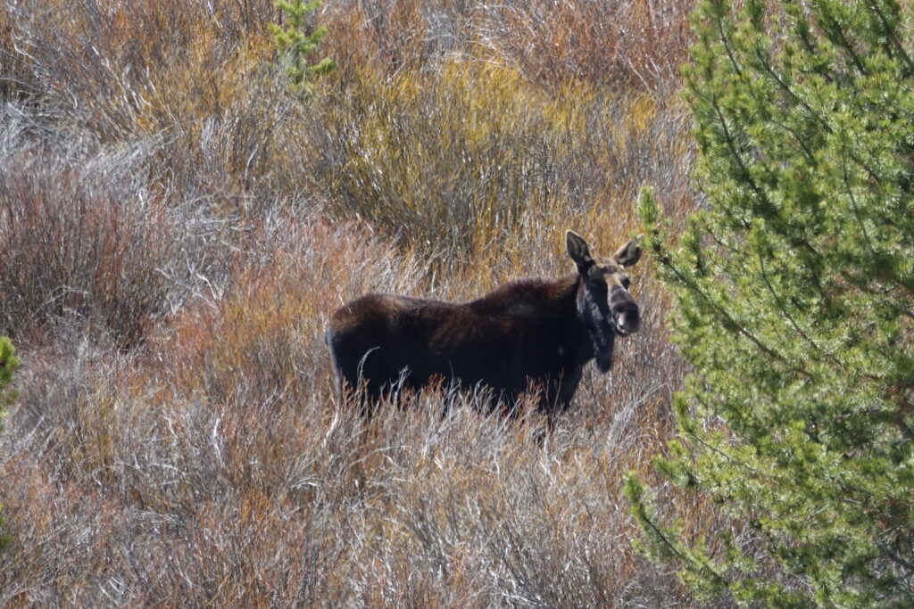 This was the first moose we saw. Nancy got it with her iPhone while I was shooting his family.