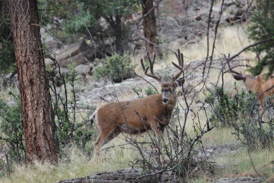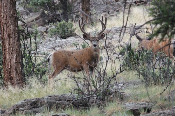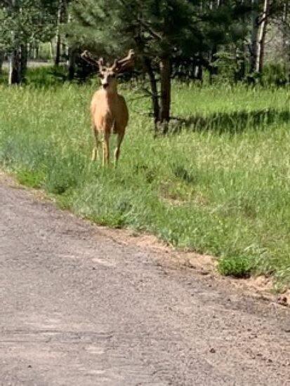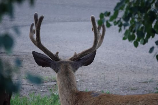 As you saw in the last post the big boys have returned. This guy was in the front yard and I waited for him to turn his head. These guys are all ears, which makes it easy to start to tell regular from big from giant. It needs to get way past the ears to qualify, and it will be interesting to watch him this fall. Not sure how a hardcore mule deer hunter judges them, for me the ears are a good start. As it is only early August, he has a good start.