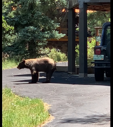 Not the best picture, we took several and none are all that. But the interesting thing about these guys is it looked like it was mom with 5 or 6 young of the year. We see them fairly regularly and who knows, may just get the shotgun out this fall. The areas we see them are fairly clear.
