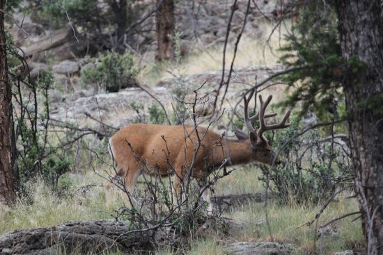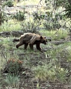 The plan was to head up the mountain so I could see an area with a couple of lakes. The Boss had hiked there and said folks were fishing. We took off at daylight hoping to see some wildlife on the drive before the 4 wheelers got out and about. There are plenty of folks here crawling all over the mountains and it has definitely kept much of the critters away from folks. Add to that the folks camping in the high mountains and there is a little bit of traffic.