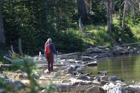 When we got to the parking area it was just a short half mile hike into the lake. We had heard about it years ago as a good area to see moose, and we hoped to get lucky but off all things it was not a moose but a hiker. She was hustling right along from a different direction than we hiked in. Turned out there is a 4 mile trail accessible from a different trail. But no matter it was beautiful up there.