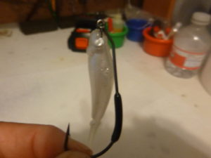 With it dead calm the pearl Controlled Descent Jerk Shad was the logical choice. Running it in a walk the dog cadence on a 1/16th swim bait hook it was just a matter of tossing it past wood and working it over and watching them flush it. The first couple of hours it was consistent up lake and I had a bunch of hits.